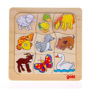 Пізнавальна та розважальна гра «Хто чий» укомплектована дерев'яною основою та 9 деталями-вкладиш. У Цій головоломці від німецького бренду Goki дитина має правильно поєднаті парі - тварини з їхнімі дітінчатамі. Всередині рамки-основи намальовані дітінчата 9 тварин. На окремий пазлах намальовані дорослі тваринки - їх батьки. Картинка складається як пазл - у кожної деталі є своє відповідне місце. Дерев'яний пазл вчитись правильно спрійматі зв'язок между картинками в ігровій форме. Тип: пазл