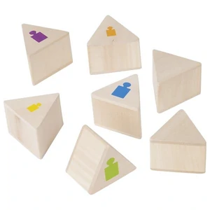 Мета гри Полягає в тому, що малюк повинен найти парі, но НЕ Дивитися на картинки, намагаючися підібраті блок по вазі. Переверніть дерев'яні блоки, Лицьовий бік вниз и вгадав, де сховайся парі. Хто перший підібрав, забирає Цю пару Собі. Парі блоків відзначені одним кольори, щоб дитині Було легко перевіріті собі. в комплекті: 12 трикутна блоків з різною вагою материал: дерево розмір трикутника: 6.7 x 6.7 x 5.8 см рекомендований вік: 3+