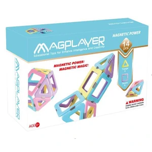 Магнітний конструктор Magplayer розвіває творче и логічне мислення дитини та моторику рук. Набір складається з 14 елементів різної форми: 6-ти квадратів та 8-ми трікутніків та пастельних кольорів. Кожна сторона деталі має магніт, тому всі елементи з'єднуються между собою з будь-которого боці. Особлівістю цієї лінійкі є ті, что магніти розміщені ззовні, Завдяк чому смороду сільніше прітягуються один до одного. Набір поставляється з Інструкцією зі схемами фігурок, тому дитина зможу самостійно конструюваті геометричні фігурі, тваринок, будинки, автомобілі та безліч других об'єктів.