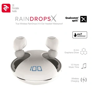 2Е RainDrops Х True Wireless – Обновленная инновационная модель уже зарекомендовавшей себя модели 2E RainDrops! Теперь еще автономней! –увеличенная емкость батарей наушников и кейса позволяют до 12 часов проигрывания на одном заряде аккумулятора наушников и до 70 часов с зарядом от кейса! Более защищенные! Обладают степенью защиты IPX7! Теперь не только дождь не помеха но и защищены даже если наушники полностью погрузятся в воду Первые с поддержкой Hi-res кодека aptX! Благодаря чипу от Qualcomm CSR QCC3020. Кнопки управления отныне сенсорные! Простота контроля заряда! Кейс оснащен скрытым LED дисплеєм отображающий общий заряд аккумулятора. Беспроводная зарядка кейса! Функция Wireless Charging позволяет зарядить кейс практически от любой беспроводной зарядной станции и даже от некоторых моделей смартфонов! Инновационные технологии уже в действии! Первые с Графеновым драйвером – колебания мембраны с невероятной точностью для кристально чистого звука. Влагостойкие, защита IPX7 Bluetooth V5.0 (Qualcomm CSR QCC3020) Время работы до 12 часов Время работы с кейсом до 70 часов Автоматическая активация и сопряжение Магнитная фиксация Эргономичное управление Wireless Charging - Быстрая беспроводная зарядка кейса Вес одного наушника всего 4 гр Спецификация: Bluetooth V5.0 Частота радиомодуля: 2.4GHz-2.4835GHz Динамик: φ6mm Частотный диапазон: 20Гц-20,000Гц Номинальная мощность: 10mW Время проигрование музыки/разговора: до 12 часов Время проигрование музыки/разговора с кейсом: до 70 часов Время в режиме ожидания: до 450 часов Время зарядки: до 1 часа Емкость аккумулятора наушников: 60мАч Емкость аккумулятора кейса: 800мАч Рабочая дистанция: до 10м Микрофон: Всенаправленный