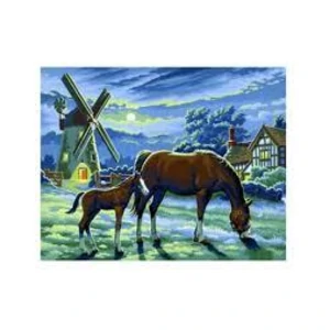 Картина с вечерним пейзажем может стать элементом декора любой комнаты в доме. К тому же, автором картины можете стать именно вы. Нарисовать картину очень просто, ведь на специальной картонной основе уже нанесены соответствующие контуры участков. Посередине контуров указан номер краски, которую нужно использовать для рисования. Размер картины - 38х29 см. Для детей от 10 лет. В наборе: картонная пронуменованная основа, акриловые краски 12 шт, кисть, отпечатанная инструкция на упаковке