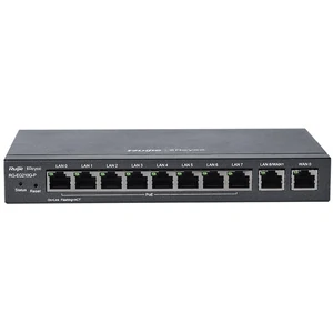 Інтелектуальний 10-портовий маршрутизатор, Зручне налаштування через веб-Ruijie Cloud, або мобільний додаток; 10 портів 10/100/1000M Base-T (8 портів 3af/at 1000Base-T до 70 Вт на порт), підтримка до 4 портів WAN; RAM 256 МБ; ROM 16 МБ; Максимальна кількість клієнтів – до 200; Підтримка локальної переадресації роумінгу рівня L2/L3 між точками доступу; 220 В змінного струму 80 Вт; Максимальна кількість керованих комутаторів з хмарним керуванням: 128
