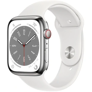 Смарт-годинник Apple Watch Series 8 GPS + Cellular 41mm Silver Stainless Steel Case with White Sport Band S/M (MNV73)
