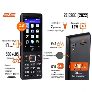 Мобільний телефон 2E E280 2022 Dual SIM Black, 688130245210 UA