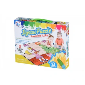 Пазл-раскраска «Новогодняя елочка» - развивающий набор для творчества. Подходит для детей от трех лет. В комплекте пазл, состоящий из 12 черно-белых фрагментов, а также набор цветных 12 восковых карандашей. Перед ребенком задача - собрать паз и раскрасить его. Собранная картинка размером 54х43 см. Фрагменты пазла изготовлены из плотного картона, они не гнутся, а на ощупь гладкие. Ребенку будет приятно их разрисовывать. Пазл - полезная игрушка, которая способствует развитию навыков мелкой моторики, так же улучшает внимание и память. Разрисовывая картинки разными цветами, дети смогут улучшать образное мышление, развивать воображение.