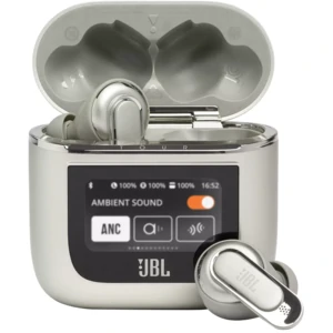 Функції додатка для навушників JBL Headphones з кнопкою керування доступні без використання телефону, просто торкнувшись екрана зарядного футляра з 1,45-дюймовим дисплеєм - справді бездоганний досвід.