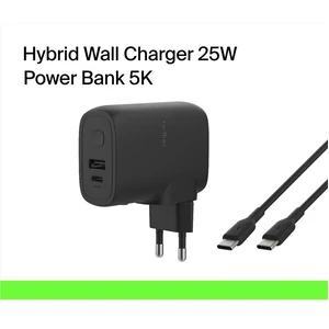 Зарядний пристрій мережевий Belkin 25Вт USB-С PD, PowerBank 5000мА·год, кабель USB-C > USB-C, 1м, чорний, BPZ003BT1MBK-B6 UA