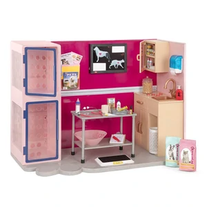 Ветеринарна клініка від Our Generation - це тематичний ігровий набір, що дозволяє дитині зрозуміти роботу ветеринарів. У набір входить 48 предметів: ветеринарна клініка, стетоскоп, світловий короб, стіл для огляду, конус для домашніх тварин, ласощі та аксесуари для лікарів. Оособливості: - є 2 клітки для утримання іграшкових тварин - справжня коркова дошка для інформації - функціональний лайтбокс - конус і пов'язка для іграшкової тварини - містка шафа для зберігання різних аксесуарів Комплектація: 1 ветеринарна клініка, 1 лайтбокс, 2 рентгенівські знімки домашніх тварин, 1 стол для огляду, 1 ваги, 1 чашка для нирок, 1 шприц, 1 термометр, 1 стетоскоп, 1 флакон вушних крапель, 1 губка, 1 еластична пов'язка, 1 конус для домашніх тварин, 3 банки корми для собак, 3 банки корми для кішок, 1 пляшка суміші, 1 банка з ласощами, 2 пакети корми для домашніх тварин, 1 коробка ласощів для собак, 2 пляшки шампуню для домашніх тварин, 1 насос для мила, 1 буфер обміну, 1 ручка, 1 блокнот з 20 аркушів паперу, 3 папки з файлами, 1 журнал для домашніх тварин, 2 плаката для домашніх тварин, 4 кнопки і 1 корзина для сміття. Ляльки і іграшки домашніх тварин продаються окремо. Рекомендовано для дітей від 3 років Потрібні 3 батарейки типу ААА (в комплекті)