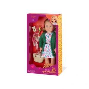 Проведіть час у найсолодшому саду із Сейдж! У цієї 46-см ляльки Our Generation темно-карі очі, які відкриваються і закриваються, а її довге світле волосся цікаво розчісувати та укладати! Відкрийте солом’яний мішок Сейдж і починайте вирощувати свої прекрасні квіти. Посадіть насіння квітів з двох пакетиків ручною лопатою і подивіться, як вони розцвітуть! Зробіть дуже гарні букети за допомогою інструменту для обрізки та оберніть їх, щоб подарувати своїм найкращим друзям! Сейдж може обертати руками і ногами, коли вона працює у своєму саду, і вона може легко перевдягатися в інші наряди для більш веселих занять. Вона вдягнена у милу сукню з квітами з довгим кардиганом та супермодними черевиками. Її сукня також має застібки, які легко відкриваються тому вбрання можна швидко одягнути та зняти, тому Сейдж може сяяти в новому образі щодня! Комплектація: 46-см лялька, сукня з квітами, довгий кардиган, пара білизни, пара чобіт, солом’яний мішок, пара садових ножиць, ручна лопата, 2 букети, 2 пакетики насіння квітів. Рекомендовано для дітей віком від 3 років