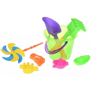 Набір для гри з піском із Повітряної вертушкою В комплекті: відерце, лопатка, грабельки, вітрячок, 4 авсочки. Кількість предметів 8 шт Цікава деталь набору – вітрячок. Для дітей від 3-х років. Матеріал пластмаса. Зелене відерце