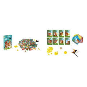 Настільна гра Сирна битва французького бренду JANOD - це величезне задоволення, як для дітей, так і для їх батьків (від 2 до 4 осіб). У набір входить 1 картонна лялька -ворон, 1 фетровий сир, 32 картки з ілюстраціями лисиць та рамками у 4 різних кольорах (жовтий, червоний, зелений та синій), 23 картонні жетони сиру та 1 дерев’яний кубик з ілюстраціями ворона, на яких зображено спосіб, як пташиний гравець повинен перемістити сир з дзьоба, перш ніж кинути його на лисиці. Інші гравці намагаються провести його над картами у своїх кольорах, щоб сир потрапив на них і вони могли набрати бали - жетони. Мета гри - отримати 6 жетонів сиру. Перемагає той гравець, який першим це зробить. Ця гра тренує координацію рухів, підтримує стосунки рук і очей, вчить терпінню та концентрації. Ігри стимулюють уяву, стратегічне мислення та планування. Це чудова розвага для всієї родини. Гра була розроблена у Франції. Деревина, з якої виготовлені її компоненти, має сертифікат FSC, що означає, що вона надходить із лісів, що керуються стабільним способом. Гра упакована в естетичну коробку. У комплект входить мішок для шнурків для дрібних деталей. Ідеально підходить для подарунка.