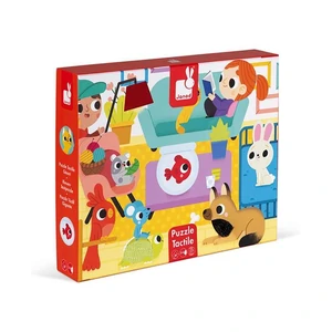 Тактильний пазл із зображенням домашніх улюбленців – оригінальна іграшка для дітей від 3-х років. Особливість цього пазлу в тому, що окремі частини картинки мають своєрідну текстуру. Загалом на пазлі 7 різних текстур на дотик. Виробник – французький бренд Janod. В комплекті: 20 деталей пазлу; Розмір зібраної картинки – 65х50 см; Чудово підійде в якості подарунка на день народження дитини; Пазли сприяють розвитку моторики рук, покращенню уважності, пам’яті у дітей.