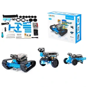 Збирайте 3 захопливі моделі роботів власними руками! mBot Ranger - потужний навчальний робот-конструктор на Bluetooth керуванні. Швидка збірка та підключення та майже необмежений потенціал. Електронні деталі повністю ізольовані та безпечні навіть для юних винахідників. Набір дозволяє збирати наступні моделі: • Всюдихід - подолає будь-яку перешкоду • Швидкий ящір - триколісний хижак, що блискавично змінює напрям руху • Нервовий птах - двоколісний робот, що усіма силами намагається втримати рівновагу Програмувати роботів можна через мобільник додаток, та через ПК на базі Scratch Модель використувує потужну плату Me Auriga на основі процесора Arduino Mega 2560 із 5 датчиками та 10 портами для підключення компонентів. Для роботи необхідно 6 батарейок АА (у комплект не входять). Рекомендується використовувати акумулятори Varta 56706101402 або Panasonic BK-3HCDE/2BE (три блістера). Характеристики: Програмне забезпечення: Makeblock, mBlock Blockly - для мобільних пристроїв, mBlock - для Mac, Windows, Linux ; Arduino IDE Датчики: 2 датчика освітлення, датчик звуку, гіроскоп, температурний датчик, ультразвуковий датчик, датчик слідування за лінією модулі виводу: зумер Технічні характеристики: Процесорна плата: Arduino Mega 2560, 256KB флеш-пам'яті, 8KG SRAM, 4KB EEPROM Живлення: 6 батарейок АА (не входять в комплект) Мотор: 2 шт, 400 об / хв Бездротове управління: Bluetooth Розміри: макс. габарити 200 x 165 x 120 мм Вага: 1600г 4 x платикова шестрня на 62 зубці 1 x допоміжне колесо 2 x пластиковая шестерня для двигуна на 62 зубці 2 x енкодерний двигун 2 x кабель двигуна 1 x балка з жолобом 0824-048 1 x Т-подібна пластина 1 х хрестоподібна пластина 1 x кронштейн 3*3 2 x балка с жолобом 0824-112 1 x U-подібний кронштейн 1 x тримач батарейок 2 x пластина з кутом 135° 2 x кабель RJ25 20 см 2 x пластина 0324-088 1 x Кабель USB 2.0 1.3м 1 x хрестова + шестигранна викрутка 8 x фланцевий рукав 4*8*4 1 x ультразвуковий датчик 2 x пластикова шестерня на 90 зубців 1 x датчик слідування лінією 6 x пластикова проставка 4*7*10 1 x плата Me Auriga 1 x гайковий ключ M5+M7 4 x латунний штифт M4*30+6 2 x зубчаста шестерня мотора на 90 зубців 20 x пластикова проставка 4*7*2 12 x самозатисна гайка M4 30 x гвинт M4*8 мм 20 x гвинт M4*14 мм 8 x гвинт M4*25 мм 8 x гвинт M4*10 мм 28 x гайка M4 6 x хрестоподібний винт M2.5*12 2 x гусениці 1 x Bluetooth модуль