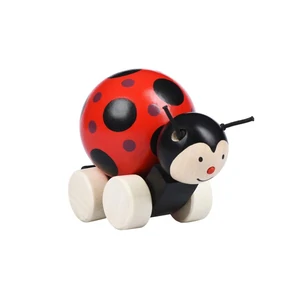 Веселая Божья коровка - оригинальный толкатель; игрушка не только надолго увлечет ребенка, но и будет способствовать улучшению моторных навыков. Игрушка немецкого бренда goki изготовлена из натуральной древесины и покрыта нетоксичными красками на водной основе. Конструкция состоит из двух частей - собственно корпуса толкателя и шарика. Во время движения вращаются не только колеса, но и красный шарик - «крылья» букашки, установленной на толкателе. Колеса словно подталкивают шарик и она вращается в обратную сторону. Каталка в виде букашки предназначена для детей от 2 лет. Игрушка длиной 9,5 см, диаметр шарика 6 см.