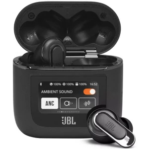 Функції додатка для навушників JBL Headphones з кнопкою керування доступні без використання телефону, просто торкнувшись екрана зарядного футляра з 1,45-дюймовим дисплеєм - справді бездоганний досвід.