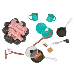 Набір аксесуарів "Навколо багаття" стане прекрасною нагодою провести час на природі. У наборі є все необхідне для пікніка, а саме: штучне багаття, пательня, туристичні кухолі для напоїв, тарілки та багато інших цікавих елементів, які допоможуть зробити гру більш захоплюючою і реалістичною.