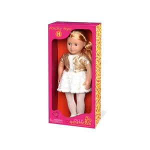 Хоуп обожнює елегантні образи та витончений стиль. Її світле довге волосся прикрашає ніжна прикраса з перлами. У наборі з лялькою: взуття, сукня, нижня білизна, колготи, прикраса для волосся та жакет. Від інших ляльок колекції Our Generation Хоуп відрізняє тонкий смак та вишукані манери, адже вона – справжня леді. Висота лялечки Хоуп 46 см. Увесь одяг виготовлений з якісного текстилю, та є абсолютно безпечним для малюка. Лялька чудово доповнить колекцію іграшок від Our Generation, а також відмінно поєднується з наборами аксесуарів бренда. Рекомендований вік: 3+