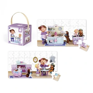 «Лола влаштовує чаювання» - набір із двох пазлів, які об’єднує сюжет про дозвілля дівчинки Лоли. Картинки дуже цікаві, виконані у приємній кольоровій гамі і неодмінно сподобаються хлопчикам. Набір складається з 60 деталей. Для однієї картинки необхідно 24 частинок, для іншої – 36. Деталі поміщені у симпатичну коробку з ручкою. Коробку можна взяти на прогулянку чи в дитсадок. Іграшка для дітей від 3 років. Виробник – французький бренд Janod.