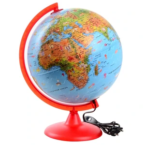 Глобус з підсвіткою. Легка для читання картографія для дітей, повна ілюстрацій тварин і символів з різних країн і культур світу. Мова: українська. Діаметр: 25 см.